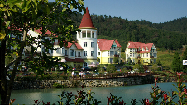 每當夜幕來臨,色彩絢麗的建筑外墻、紅褐色的斜坡屋頂、筆直高矗的圓形塔尖,與艷光四射的彩燈、璀璨迷幻的湖景融為一體,使東亞度假山莊變得華麗浪漫、溫馨迷人。