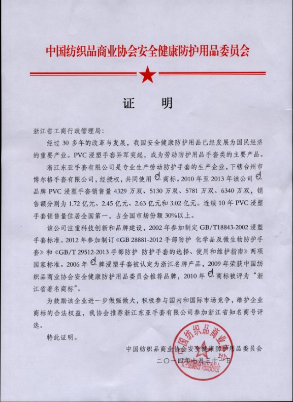 • 中國(guó)紡織品商業(yè)協(xié)會(huì)証明